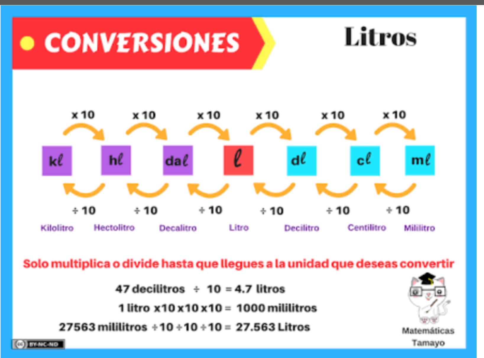 Para el viernes 11 de octubre : convertir con ayuda de la tabla que tienen en su libreta 38 decilitros a litros, 4 litros a mililitros, 30648 mililitros a litros Para el viernes 11 de octubre